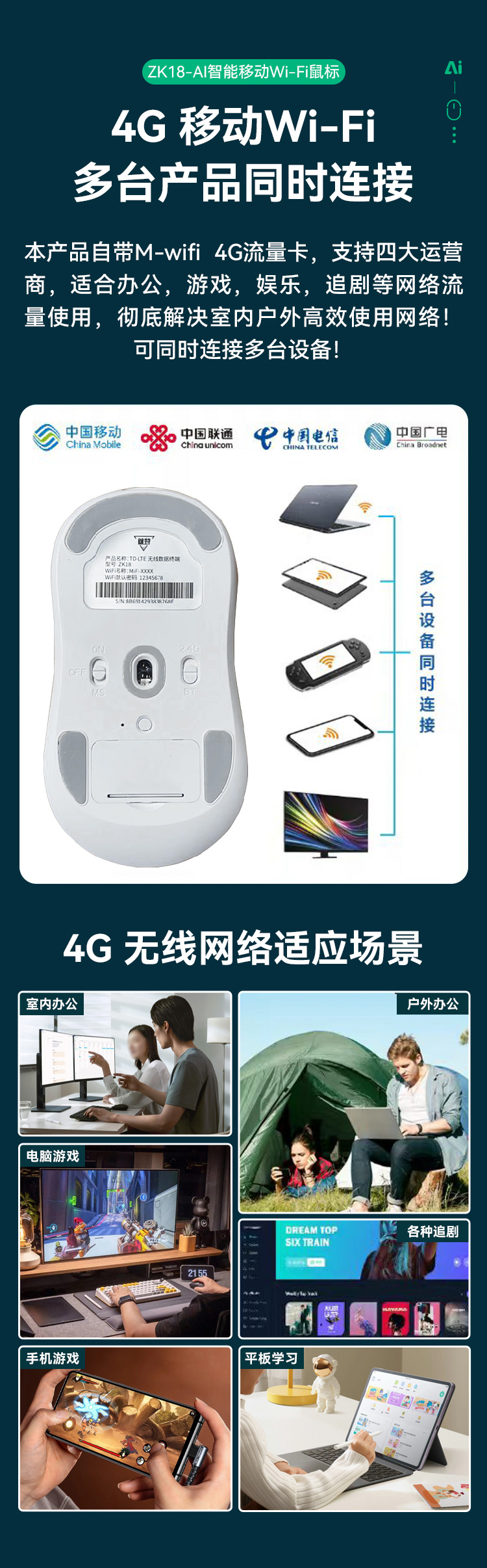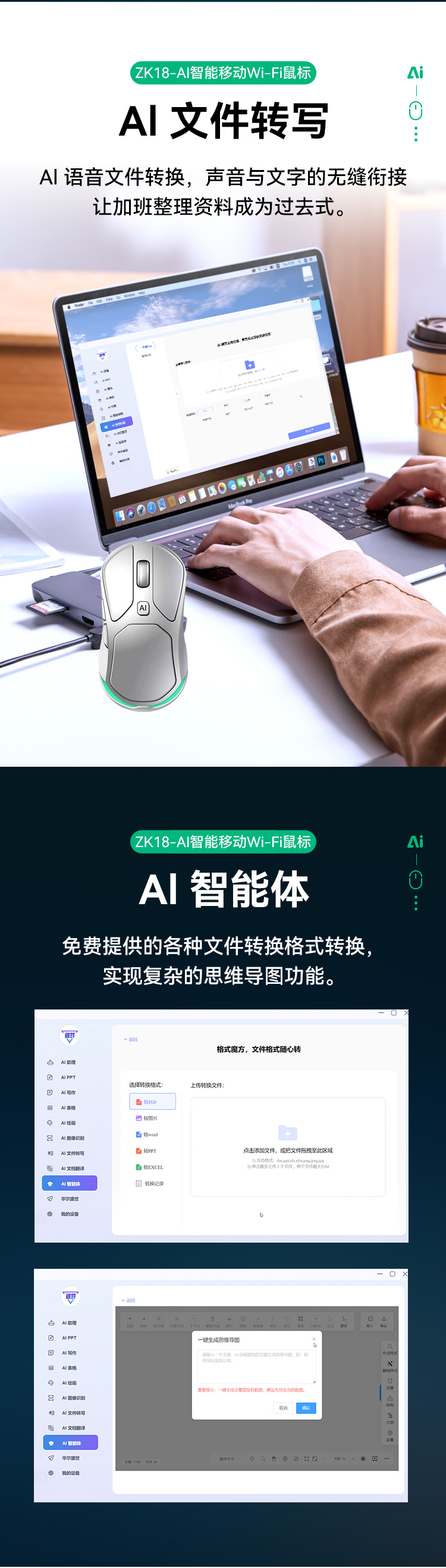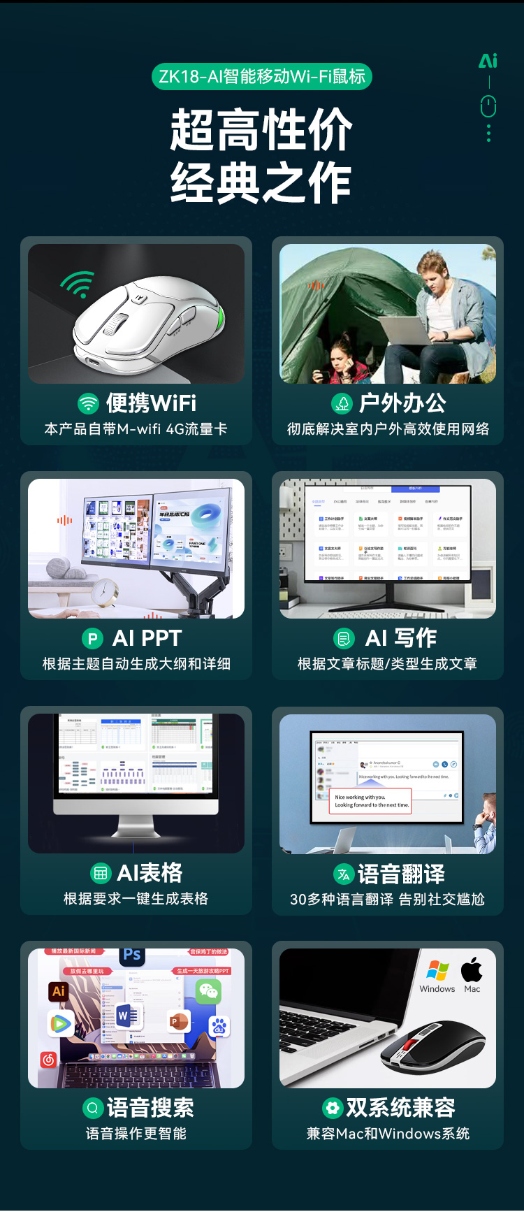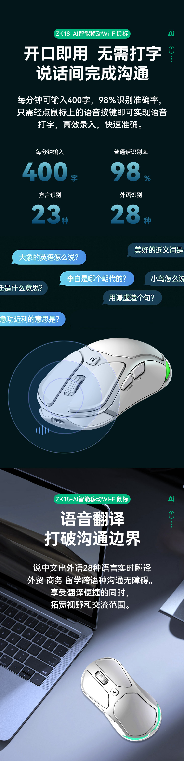 魅特AI 4G无线语言鼠标-ZK18